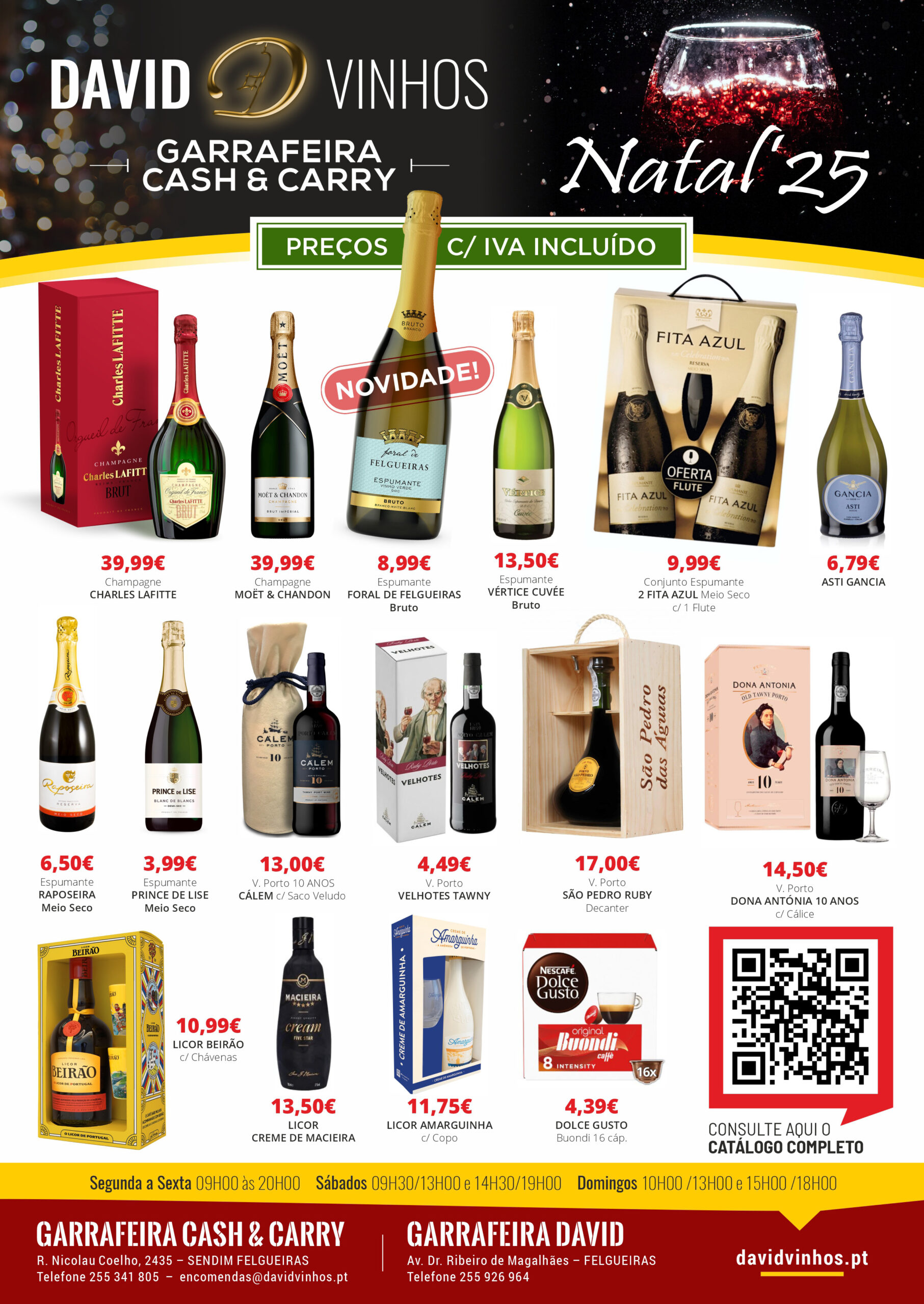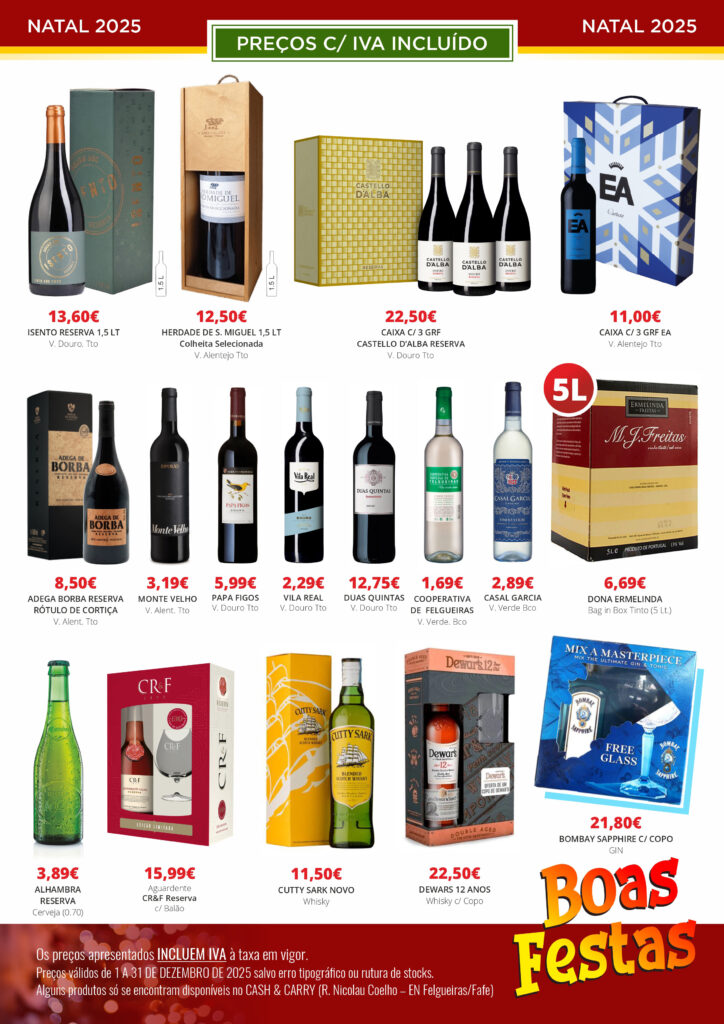 Todos os anos, no mês de Dezembro, preparamos uma exposição especial com produtos de elevada qualidade (onde não faltam os melhores Portos, Champagnes, Vinhos, Aguardentes, Cognacs, Licores, etc…), para usufruir e/ou oferecer na quadra natalícia.